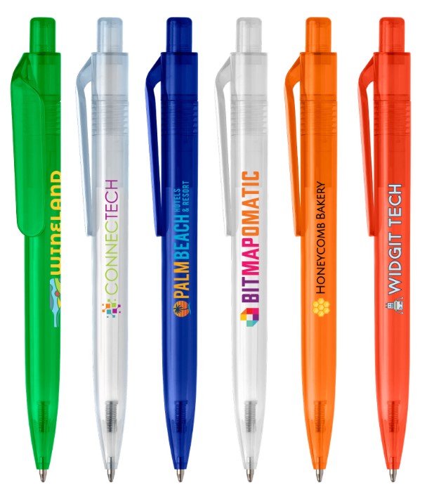 Our stylish Aqua Click pen features a nosecone, barrel, clip and plunger made with 100% recycled P.E.T. plastic. A great item for any organization looking for an eco-conscious promotional product. Choose from a variety of vibrant color options and customize with your full-color imprint using our ColorJet technology. 5.49" L x 0.45" H