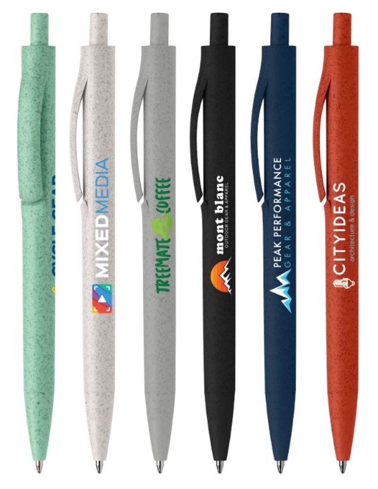 One of the newest additions to our Eco-Minded product line, the Zen Eco Wheat plastic pen is made with 40% reclaimed wheat straw. This sleek retractable ballpoint pen is a wise choice for any organization looking for an eco-conscious promotional product. Customize with a full-color inkjet imprint using out ColorJet technology. 5.52" W x 0.43" D