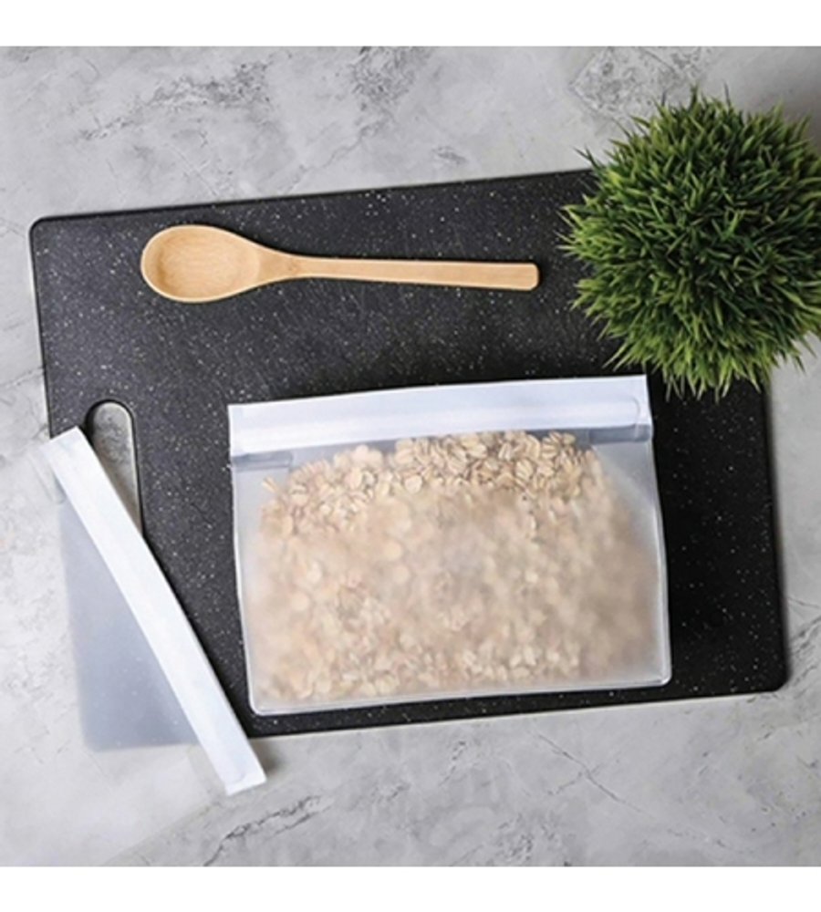 Gusseted bag gives extra storage space when you're wanting travel or storage convenience, but don't want to contribute to single use plastic waste. This reusable food storage bag is the eco-friendly, non-chlorinated & odorless solution. Perfect for sandwiches, fruits, veggies & other snacks, but also ideal for stationery organization like elastics & paper clips, or as a toiletry bag. Refrigerator & freezer safe. Hand wash only. The bags are not microwaveable. FDA compliant. 8" W x 6" H