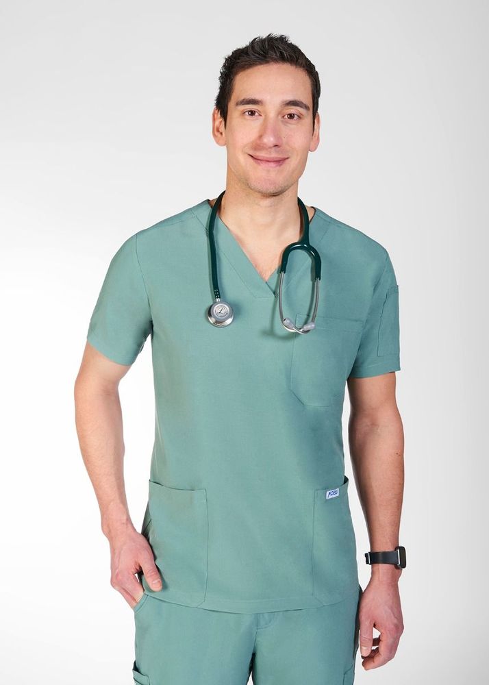 (With Staff Name) Unisex Stretch Flex Scrub Top with Clinic Logo