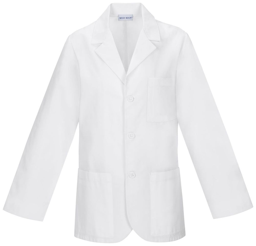 sku: SPECIAL-6The perfect half length lab coat. Standard 3 button closure, two large patch pockets and one chest pocket. This lab coat is for both men and women. 31" long. Fabric is 65% poly/35% cotton.