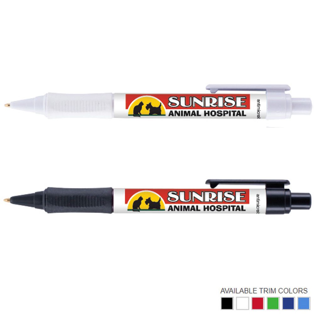 Grip Write AM Pen is formulated with an antimicrobial additive that is included in the exterior plastic parts, including the grip. The additive technology provides antimicrobial product protection against unwanted microorganisms that could damage the pen. Decorated with our full-color, SimpliColor 360 full-wrap imprint technology and offered with our gel-like, black Eversmooth (R) Ink, this retractable ballpoint is a great addition to any business, including healthcare, hospitals, restaurants, food service, education, schools, banks, hotels and much more. *Made in USA and imported parts. Black Ink ONLY.