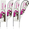 The Zoom Flex Medium Flag features a full fiber pole and wind-resistant flag. For indoor or outdoor use, the flexible, design allows the graphic to rotate in the wind. The Zoom Flex Small Flag comes in your choice of single or double-sided and is offered in four shapes - feather, straight, teardrop and edge. Heights vary based on flag shape. Ground stake and storage bag included. 46" W x 116.13" H x 1.75" D