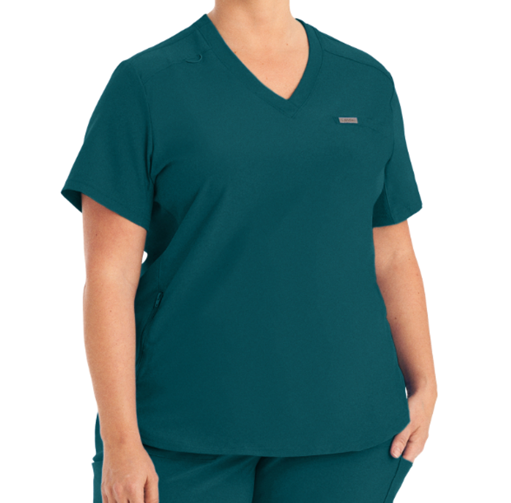 (With Staff Name) Landau - Women's Curved Hem Tuck In V-Neck Top