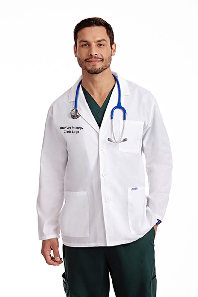 Half the coat, all the comfort. The perfect half length lab coat. Standard 3 button closure, two large patch pockets and one chest pocket. This lab coat is perfect for both men and women. WHITE ONLY.